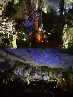 一踏入洞中,仿佛置身于天然的16℃空调房❄️,瞬间驱散了夏日的酷暑!石柱石帘都是数百万年来水滴“雕刻”而成的艺术品✨ 站在巨大的钟乳石下,感觉自己渺小如尘埃,手机内存也因为拍了太多照片而爆表——每一张照片都像科幻大片🤳
