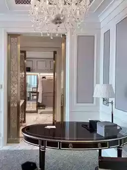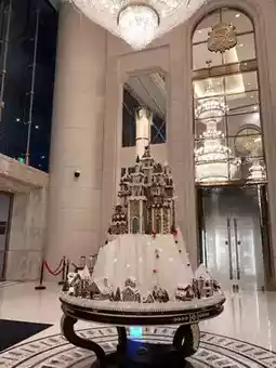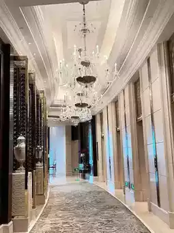 酒店位于市中心繁华地段,交通便利。步入酒店大堂,奢华气派扑面而来。高耸的穹顶和璀璨的水晶吊灯,尽显尊贵典雅。