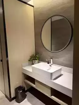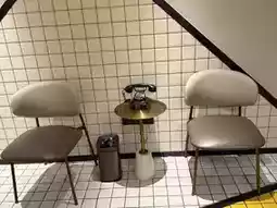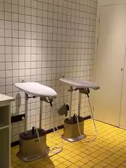 公共区域处处充满惊喜。一部复古电话静静地摆放在金属边桌上,与网格瓷砖和现代吊灯交相辉映,营造出一种奇妙的复古未来主义氛围;就连洗衣区也散发着精致的气息,三盏黑色吊灯散发出温暖的光芒,洗衣液和矿泉水的摆放也体现了酒店对细节的关注。