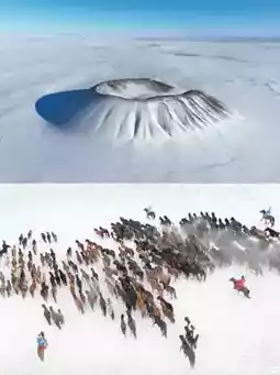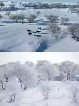 ⑥ [Galloping Horses] In winter, herders drive their horses across the grassland, kicking up countless snowflakes, creating a misty scene accompanied by the neighing of horses, forming a breathtaking sight and sound!