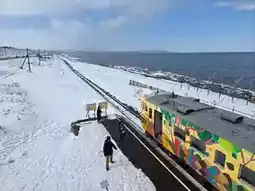 The Drift Ice Story train runs along the Sea of Okhotsk