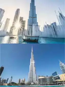 📅 D1: Pick up at Dubai Airport, climb the tower at night and watch the fountain show.