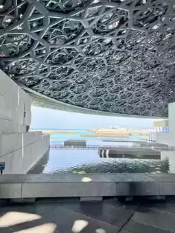 A short drive from Dubai to Abu Dhabi will lead you to a stunning museum that seems to float on the sea—the Louvre Abu Dhabi.