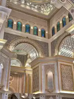 As you pass through the main entrance and step inside, you’re greeted by an overwhelming sight. The massive dome hall rises to a height of 60 meters, so high that you can’t see its end even when you look up. The walls and ceilings are adorned with intricate Arabesque patterns and geometric designs, making every step a moment of awe. The floors are decorated with marble mosaics, giving the feeling of walking through an art gallery within the palace~📸