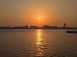 As dusk fell, the sunset glow filtered through the domes and spread across the water. A crimson glow tinged the sea, which in turn reflected the museum walls, captivating the end of the day with art.