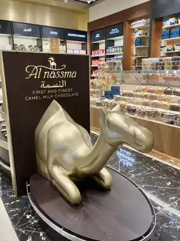 Abu Dhabi pistachios, beets, and camel milk chocolate. We also managed to find some baklava. 🥹