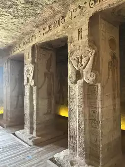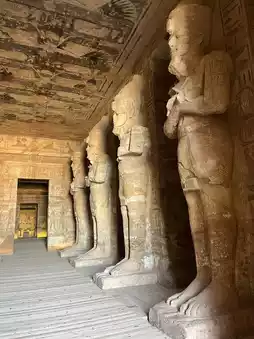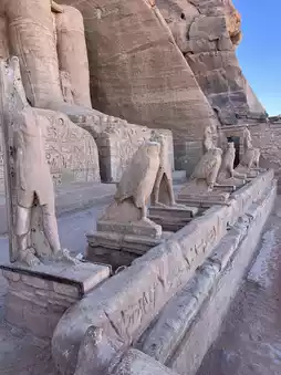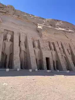 Carved into the rock, it consists of the Great Temple, with its colossal seated statues of Ramses II flanking the facade, and the Small Temple for Queen Nefertari.