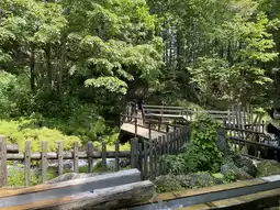 Next, we visited Yotei Mountain Spring Water Park. Yotei Mountain resembles Mount Fuji and is incredibly beautiful, with snow rarely melting at its peak. At the park located at the foot of the mountain, we enjoyed drinking the naturally flowing spring water, which was pure and refreshing. This spring water has been selected as one of Japan's top 100 natural water sources. There's also a nice coffee shop nearby!