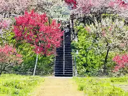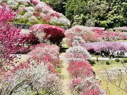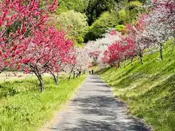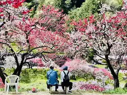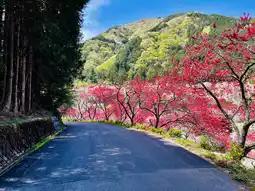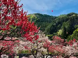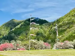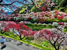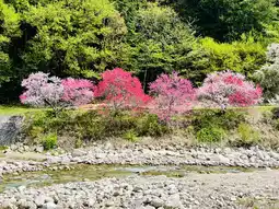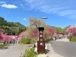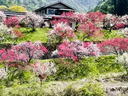 There are 5,000 flowering peaches of three varieties, red, white, and pink, planted in Hanamomo no Sato. Unlike regular peaches, flowering peaches are not edible, but are for decoration, so local people took the trouble to plant them. I'm very grateful. The flowering peaches that bloom in Hirugami Onsen in early April will increase in altitude over time, and bloom in Hanamomo no Sato in late April. The flowering peaches planted in large numbers on both sides of the river and in the mountains are truly magnificent, and I'm speechless. It really feels like a paradise.