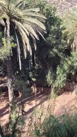 Riding from the village into the vast mountains, you will reach Paradise Valley after an hour of winding roads. Paradise Valley is not as beautiful as its name suggests, like a paradise, but it is actually an oasis in the barren mountains. The oasis is full of lush coconut trees and reeds, and the river is like a big-headed tadpole with a long tail, with most of the water source concentrated in the head and getting smaller and smaller as it goes back. Although the oasis is not spectacular, it stretches for several kilometers. In the old days, how many people and animals did this oasis save? How much hope did it give them to keep living? In this sense, it is not an exaggeration to call it "Paradise Valley."