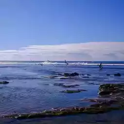 The hills behind the city add depth to every view — their green slopes contrasting beautifully with the sandy beaches and sparkling blue ocean. Whether watching surfers ride the waves or locals strolling along the promenade, the setting feels effortlessly serene yet full of life. 🌊🏖️