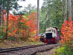 #cherryblossom25 A refreshing train ride through vibrant autumn foliage đ