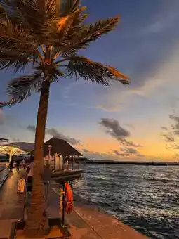 The water is crystal clear and absolutely stunning. The sand is slightly coarse, and since it’s a man-made island, the vegetation isn’t as lush as some natural islands — but the views and ambiance are still breathtaking.