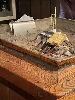 ▶️The local dish miso dengaku is carefully grilled right in front of you after an order is placed.