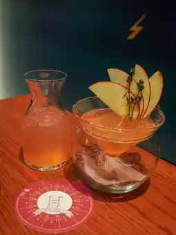 It is a non-alcoholic cocktail based on apple juice, slightly sour and refreshing.