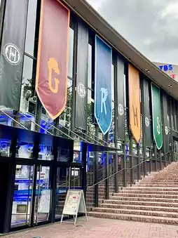 From the moment you step outside, you’re greeted by grand staircases and intricate architecture that transport you straight into the Wizarding World. The atmosphere feels cinematic — as if you’ve stepped into Diagon Alley or Hogwarts itself.