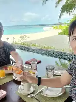 After getting off the plane, the Maldives airport is small but very friendly and easy to enter and exit quickly. The resort came to pick us up at the airport. There was cheerful music and drums to welcome us. We were also given woven stars to hang around our necks, which was a great souvenir. A very handsome yoga teacher led the exercise in the morning. Everyone in the resort had a friendly smile. When dining, by the pool or by the beach, there was no need to pay extra (tips were included in all drinks). We still prepared US dollars in cash to give tips to thank those service staff who were particularly touched by us. Everything was perfect!