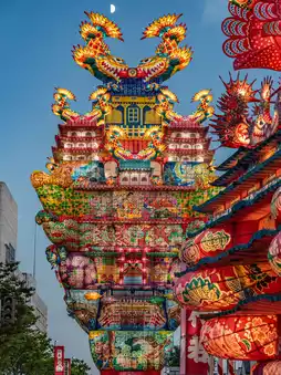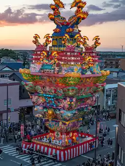 The event features massive castle-shaped lanterns parading through the streets, creating a lively atmosphere. Among them, the 17.6-meter-tall "Karoku" and the 24.1-meter-tall "Aiki," the tallest in Japan, are truly breathtaking and awe-inspiring.