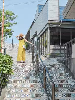 "Kirakirazaka" in Ako City, Hyogo Prefecture, features a European-style tiled staircase and a beautiful view of the Seto Inland Sea.