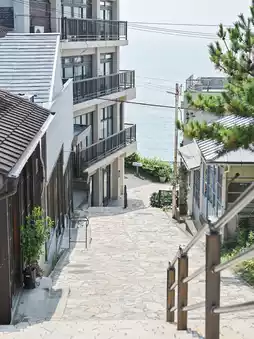 This slope leads from the grounds of "Iwatsuhime Shrine," famous for matchmaking, to the sea. The view of the ocean from beyond the shrine's torii gate is also stunning, so it's definitely a must-see! ✨