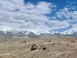 On the way back to Kashgar from Muztagh Ata Glacier Park, we gazed upon one of the world's famous peaks, "Kongur Tagh," with an elevation of 7,649 meters (often cited as 7,719 meters), the highest peak of the Western Kunlun Mountains. Kongur Tagh is pyramid-shaped, almost entirely composed of rock and ice, with steep slopes averaging about 45 degrees. Conquering Kongur Tagh is no less challenging than Mount Everest, especially its perilous northern slope, which remains unclimbed to this day. Under the clear afternoon sky, Kongur Tagh appeared deep blue, with sharp ice and snow ridges like knife edges. Suddenly looking back, when the pyramid-shaped summit pierced through the clouds, the entire mountain seemed to float in a halo of light, like the lingering ellipsis of our Southern Xinjiang journey, suspended in the sky, reluctant to fade away...