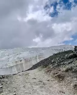 "Muztagh Ata Glacier Park" is located at the foot of the world-renowned "Father of Ice Mountains" - Muztagh Ata Peak. The perpetual snow on its summit forms glaciers, composed of several peaks with the main peak standing at 7,546 meters above sea level, straddling the border between Tashkurgan and Akto County, and is one of the three highest peaks of the Eastern Pamir Plateau. Spanning 20 kilometers, the park offers views of majestic glaciers, the beauty of ice serpents, the diversity of ice towers and frozen landscapes, as well as exotic flowers, rare plants, and peculiar rocks. However, visiting Glacier No. 4 is the ultimate goal for all tourists, who are willing to endure altitude sickness and carry oxygen tanks without hesitation. At the visitor center, everyone queues to take a shuttle bus for over 20 minutes to reach the foot of the snow-capped mountains, then chooses to walk or ride a horse for 1,000 meters to the viewing point of Glacier No. 4, where the elevation marker of 4,688 meters stands out prominently. The ice tongue of Glacier No. 4 resembles a jade belt descending from the heavens, shimmering with a faint blue glow under the sunlight. Standing before the glacier on the crunching moraine rocks and touching the millennia-old ice with fingertips feels like grasping the pulse of frozen time.