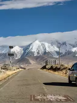 There is basically no traffic; you can capture the road, big mountains, and the feeling of snow mountains right in front of you.