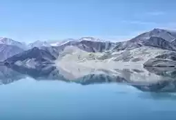 One of the eye-catching spots on the way to Taxkorgan, and a popular internet-famous location, Baisha Lake is located in Akto County, Kizilsu Kyrgyz Autonomous Prefecture. It is a plateau lake connected to a reservoir, situated at an altitude of 3,300 meters. Surrounding it are the Baisha Mountains, a high mountain in the Pamir Plateau range. Due to long-term weathering, the rocks at the mountain top have turned into powdery sand that cascades down, covering the mountain body, hence the name Baisha Mountain. It consists of more than ten hills of various sizes, with the green mountain body covered by white sand. The snow-capped mountains and the lake complement each other, showcasing a stunning Tiffany blue that is breathtaking. However, the plateau scenery is highly dependent on weather and lighting. When I visited three years ago, it was windy with drifting snow, the sky was grayish yellow, and the lake water was yellow-green—truly a "photo deception" as the legend says. This time, the weather finally gave me a clear blue sky with no wind, and the lake surface was calm like a mirror. Arriving in the afternoon at the north slope, which was backlit, the reflection of the continuous Baisha Mountains looked like a computer-generated image. The distant lake surface showed a deeper blue than the sky, while the nearby water was apple green. We lingered for two hours among the uneven sandy ground, with surrounding peaks covered in the white snow of the Pamir Plateau. Clouds began to drift slowly across the blue sky. Away from the crowds, the tranquility was elegant, as if isolated from the world. I kept changing lenses and using my phone, constantly composing the scenes before me, but the final photos still could not fully capture the true colors and awe I saw with my own eyes.