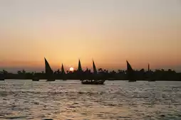As the sun gradually set, the sky was dyed a gorgeous orange-red, and the Nile River became even more dreamy and charming. The distant sailboats turned into black silhouettes, and the ropes sparkled with a unique light in the afterglow of the setting sun. Occasionally, the boatmen's passionate singing and bursts of laughter came from the boats, which was the joyful expression of the tourists immersed in this wonderful atmosphere.