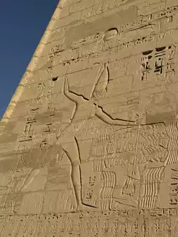 Medinet Habu is the mortuary temple of Ramses III and represents the pinnacle of ancient Egyptian war art. The reliefs on its walls depict the Pharaoh's glorious battle against the "Sea Peoples."