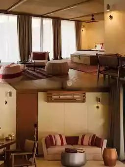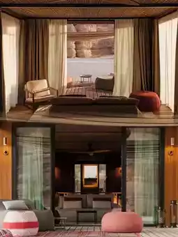 The tent-style rooms blend seamlessly with the desert environment while maintaining modern comfort. Lying on the soft bed, gazing at the starry sky through the tent's skylight, feels like sleeping in the embrace of the universe. The artistic room decor is simple yet stylish, with every detail reflecting a love for nature and life.