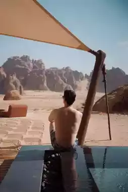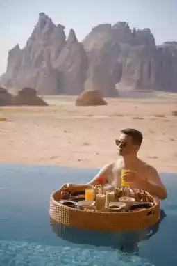 My pool suite has finally arrived. The moment I pushed open the door, the shock was upgraded once again. The world outside the window, the wilderness that has been sleeping for thousands of years, is actually your private scenery. I must admit that the journey to AlUla was quite arduous, but at this moment, it was worth it!
