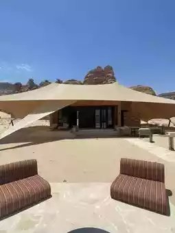 From my room, I had a clear view of the fully mirrored Maraya Concert Hall and even caught the sunrise! Mornings in AlUla are absolutely delightful and serene 🕊️💕. Since it’s close to Habitas, I highly recommend planning a stay at both places ✍️.