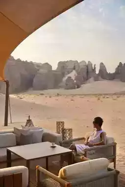 AlUla is a city in northwestern Saudi Arabia, located 1,100 kilometers from the capital Riyadh. It is a hub on the Silk Road and Spice Route, as well as a convergence point for many religious pilgrimage routes. Starting from Banyan Tree, the hotel shuttle service can take you to the architectural marvel known as the "Desert Mirror," the Maraya Concert Hall. Its exterior is made up of 9,740 copper glass panels, with a mirrored surface area of 9,740 square meters. In 2020, it was recognized by the Guinness World Records as the "World's Largest Mirrored Building." "Maraya" means "mirror" in Arabic, and this place is incredibly stunning and perfect for photos.
