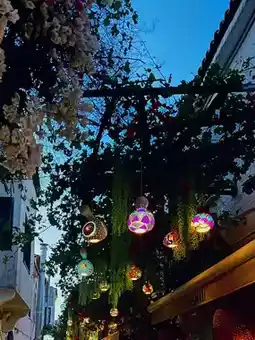 But Alaçatı really shines at night. I ended up back at Deliköy for drinks by the beach — music playing, lights strung between trees, and that magical Aegean air.