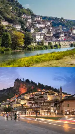 🏛 Berat, a UNESCO World Heritage Site “The City of a Thousand Windows,” with its distinctive rows of whitewashed houses nestled on the hillsides. Stroll through the old town and admire churches and museums that tell profound religious and cultural stories.
