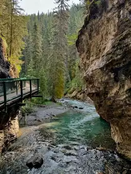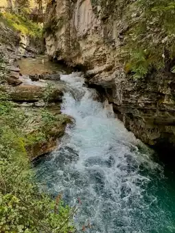 The mist from the falls creates a refreshing coolness, especially on warm days, while the surrounding forest adds a sense of calm and serenity. Birdsong and the gentle roar of water combine to create a relaxing natural soundtrack. The hike is suitable for most visitors, making it an ideal adventure for families and nature lovers alike. Johnston Canyon Lower Falls is not just a waterfall, it is an immersive experience that showcases the raw beauty of Alberta’s wilderness in an accessible and unforgettable way.