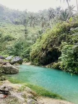 Start early—Kanlaob Falls is far from city buzz, so you’ll need to book a local agent ahead of time. At the trailhead (Q9PH+MQ, Alegria), hire a guide (cash only!) to lead you through the rugged paths and lush forest, where every step brings you closer to the sound of tumbling water. Make sure to experience the canyoning adventure: jump, slide, and swim through pristine pools and narrow gorges.
