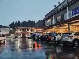 While we were traveling to the accommodation and walking in the foggy valley city, we found a dessert shop, a tea shop, a small local restaurant, an umbrella shop, a raincoat shop, and a convenience store. We walked in the rain a bit, but the atmosphere was worth it. The cool air and the beautiful sea of fog in the middle of the valley made us want to come out and experience the atmosphere.