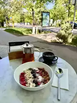 If you’re looking for a peaceful spot to relax in Almaty during spring, cafeteria is a hidden gem! This cozy café has a green-filled terrace that’s perfect for enjoying the warm sunshine and fresh air. I had the vegan granola yogurt bowl while sitting outside — super healthy and absolutely delicious. It felt like the perfect way to start a slow, relaxed day.