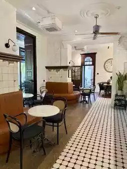 The vibe is very chill, with lots of plants and a calm atmosphere. It’s great for breakfast, brunch, or even a little afternoon break while exploring the city.