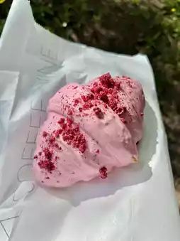 I grabbed a freshly baked croissant to-go and enjoyed it under the trees in the park. The buttery layers and mountain air made the moment even better!