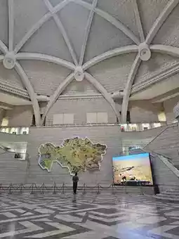 The Central State Museum of Kazakhstan resides in an elegant structure with striking traditional architecture in hues of blue and white. Although the signboard in Russian indicates the museum hours, which differ from those on the website, it wasn't an issue for us since we arrived around 2 PM. The entrance fee is 500 tenge per person. The staff is friendly and accommodating. The museum boasts three levels of exhibits: the ground floor showcases Kazakhstan's history from prehistoric times to the Middle Ages. Each exhibit includes an English label, which greatly aided our comprehension. There are numerous displays of local costumes and carpets, alongside musical instruments and exhibitions highlighting agriculture's significance to the nation. The second floor is dedicated to the modern era, featuring an entire room devoted to the diverse nationalities inhabiting Kazakhstan and their traditional attire. A standout exhibit is the precise miniature replica of the "golden man" military uniform, created from over 4,000 gold pieces. Our visit lasted about an hour and a half, but we wished we could have stayed longer. It's highly educational and enlightening. However, I recommend offering an English brochure for visitors like us. Despite this, the visit proved to be thoroughly rewarding!