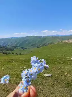 Summer in Altay is the most abundant season of the earth. The sunlight spreads like golden silk over the rolling mountains, awakening the grasslands that have slept through the winter. Millions of acres of green meadow carpets stretch from the foothills to the horizon, with wildflowers scattered like stars—golden globeflowers, purple lavender, and pink-white cornflowers gently swaying in the breeze, emitting a refreshing fragrance.