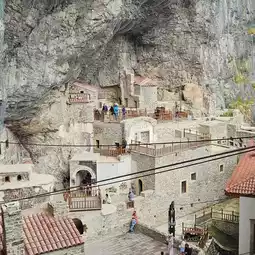 · Cliffside Majesty: Built into a rock face at 1,200 meters (3,900 ft) overlooking green forests and waterfalls.