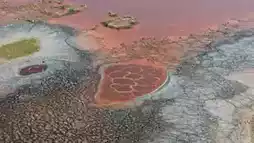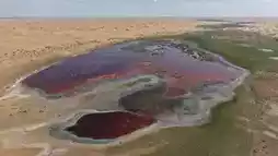 From a low-angle view by the lakeside, the red waters of the lake contrast sharply with the golden desert, creating a striking visual impact that touches the soul. When the drone takes flight, the heart-shaped outline of Ulan Lake becomes clear from a bird's-eye view, surrounded by white saline patterns resembling vascular networks. The breathtaking scene left me speechless, marveling at the wonders of nature.