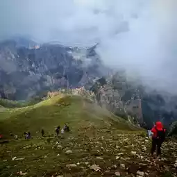 It had rained here two days before our visit, making the canyon muddy and difficult to traverse. Hiking through the canyon required lateral movements and weaving up and down, with the deepest mud trapping feet. Before reaching the narrowest part of the canyon, there was a small cliff of three to four meters that required rope-assisted climbing.