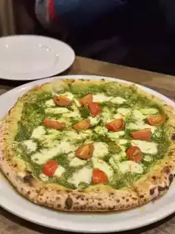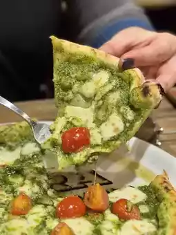 The homemade genovese sauce is fragrant, and the basil is well-balanced, making it an excellent match with the mozzarella cheese! A luxurious slice accented with the sweetness of cherry tomatoes 💗