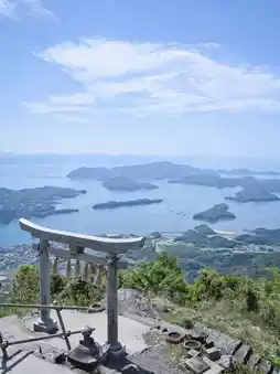 From the shrine grounds located near the summit, you can see the beautiful islands of Amakusa and the vast ocean. Especially in the early morning and at dusk, the breathtaking views unfold.