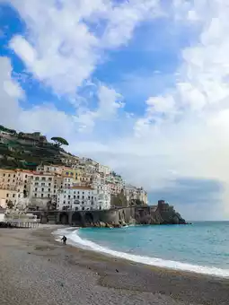 Beautiful pastel-colored houses line the coast, and from the beach you can see not only the sea but also the townscape of Amalfi.